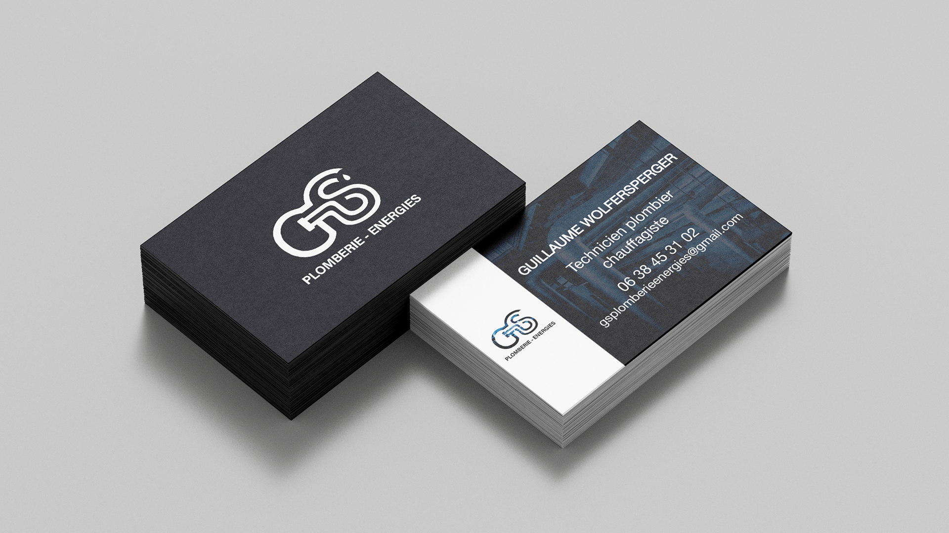 Ma mission : Créer un logo, des cartes de visites et des éléments de communication pour GS Plomberie Energies